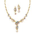 Mariell's prom or bridesmaids necklace set features iridescent AB crystal bubbles in a rich gold tone setting. Perfect for bridesmaids, homecoming, graduations and proms!