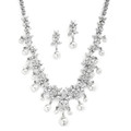 Description: This luxurious CZ and White Pearl bridal necklace set epitomizes wedding glamour. "Breakfast at Tiffanys" meets nuptual couture with this brilliant 16" necklace and 1 1/2" h earrings. The fiery CZ's and lustrous pearls will light up your bridal gown.