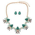 Description: Glittery Green gemstones are the star of this intricately embellished statement necklace set. When your prom, homecoming or bridesmaids gown needs a bold splash of color, this Dark glitter Green, Pastel Mint Opal and Metallic Pewter necklace set is the go-to accessory. Also a great addition to any jewelry collection for dressy-casual wear and holiday parties!