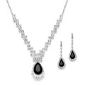 Mariell Bridals Rhinestone Necklace Set with Black Caged Pear 4140S-JE