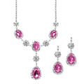 Mariell Bridals Rhinestone Necklace Set with Fuchsia Teardrops 3803S-FU