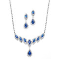 Description: Mariell's gorgeous silver rhinestone set has 1 3/8" h drop earrings & an adj. 14" - 18" necklace with vibrant Royal Blue stones which plunge 1 1/2" at the center. This set is great for proms, bridesmaids, mothers of the bride.
