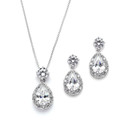 Mariell Brilliant CZ Halo Pear Shaped Necklace and Earrings Set 4550S-S