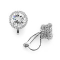 Description: Regal styling define these brilliant round-cut Cubic Zirconia clip on studs in a majestic and meticulously detailed crown setting. Whether you wear our gorgeous clip on studs to a wedding, romantic candlelight dinner or important business meeting, no one but you will know these sublime stunners are not real diamonds! Each of these 10mm stud clips feature a 2.0 Carat 8mm pronged solitaire resting in a 1/4" deep crown basket. At last, delicate clip earrings that are sophisticated and super comfortable with the look of fine jewelry at a fabulous low price!  Mariell's gleaming AAAAA grade Zirconium studs are plated in Genuine Platinum Silver Rhodium. We love the versatility of these clip earrings for both special occasions and everyday wear. Our non-pierced CZ earrings include cushion backs for all-day comfort. 3/8" round.  Lifetime Guarantee.