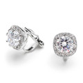 Mariell Cubic Zirconia Cushion Shape 10mm Halo Clip On Stud Earrings with Round Cut Solitaire 4556EC