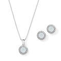 Mariell Cubic Zirconia Round Shape Halo Necklace and Stud Earrings Set - Blue Opal 4552S-BL