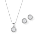 Mariell Cubic Zirconia Round Shape Halo Necklace and Stud Earrings Set - White Opal 4552S-WH