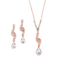 Description: Cubic Zirconia, rose gold rhinestone and crystal necklace set will adorn wedding, prom, homecoming or bridesmaids gowns with affordable sparkle & style. The adjustable 14" - 19" necklace drops 1 3/4" at the center & the chic dangle earrings are 1 3/8" h.