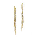These stylish earrings are sure to catch the eye of even the most hard-to-please fashionista. Made with delicate strings of crystals in a gold setting, they are perfect for any prom, pageant, or homecoming. These earrings are a stunning best-seller at a great price.