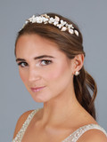 Mariell Design Bridal Tiara Vine with Ivory Resin Flowers and Hand Painted Matte Gold Leaves 4631HC-I-G