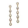 Description: A slender cascade of Swarovksi crystals and delicate ivory pearls define these graceful dangle earrings to complete your wedding or prom wardrobe with perfect style. We can't resist the sweet interplay of sophistication and whimsy in these sparkling linear stunners. 2 1/2" h. Gold tone plating.