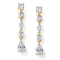 A brilliant blend of Cubic Zirconia shapes and genuine 14K Gold plating creates these gorgeous linear wedding or prom dangle earrings by Mariell. Round stud tops cascade into marquise and ovals that end with a brilliant teardrop to create wholesale earrings that shimmer across the dance floor! These are fabulous bridesmaids or homecoming earrings as well!