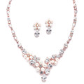 The organic beauty of freshwater pearls are highlighted against fiery Cubic Zirconia pears for wedding look that guarantees head-turning style. This distinctive rose gold necklace set is a bridal favorite and adds luxurious bling to any special occasion jewelry collection.