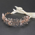 Mariell - Rose Gold Bridal Headband with Hand Painted Gold and Silver Leaves 4384HB-I-G