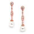 Mariell Rose Gold Dangle Wedding Earrings with CZ Filigree & Bold Pearl 3625E-RG