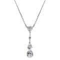 Description: This radiant bridal or bridesmaid necklace features elegant pear-shaped and trillion shaped cubic zirconia stones in a delicate dangle design