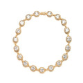 Description: Mariell's 17" bridal necklace has a stunning design of cushion cut stones surrounded by pave cubic zirconia. With a high-polish gold finish, this beautiful necklace looks like vintage diamond jewelry
