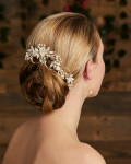 Type: Porcelain flower clip with rhinestone, pearls, and metal leaves. Available in gold or silver
