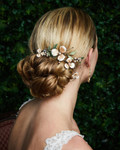 Marionat 9251 Metal Flower Hair Clip With Metal Leaves And Pearls