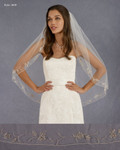 Style: Marionat Bridal Veils 3609 - 2x36” Embroidered veil with pink beads