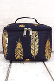 Navy Feather Small Carrying Bag - Cosmetic Bag