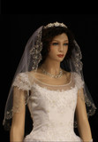 Noelle & Ava Collection - Top Gathered Tasteful French Royal Style Silver Thread Embroidered Design Accented With Swarovski Rhinestones, Pearls And Shiny Seed Beads - Style 3054E