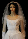 Noelle & Ava Collection - 36" Inches - Glary Hand Sewn Double Shiny Silver Bugle Beads And Swarovski Rhinestones Along Edge - Style 3006