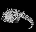 Description: Premium class pliable comb of intricate laid rhinestone & pearl flowers and leaves, accented with pearls and rhinestone floats - Waltz your way down the aisle wearing this glittering hair comb! This comb creates a lovely accent for your bridal ensemble.