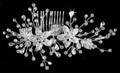 Description: Rhinestone comb with two flowers, three leaves, and floating rhinestone accents - Waltz your way down the aisle wearing this glittering hair comb! This comb creates a lovely accent for your bridal ensemble.