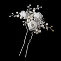 Description: Beautiful organza rose bridal hair pin embellished with pearl and rhinestone accents.