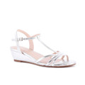 Tessa is a simple, classic t-strap wedge sandal featuring a 1.5 inch heel made with a nice metallic shimmer material and a synthetic sole.
