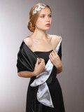72" x 18" Satin wrap is an ultra soft reversible black & silver evening wrap. It's 2 wraps for the price of one! For a 2-tone look, it can be worn with a folded down "lapel". The wrap has a pull through self-closure creating a cascade down the front.