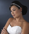 This modern headband ties beneath the hair with two white matte satin ribbons, and features an interlinked silver plated design with swarovski crystal flowers. The design measures 9-1/2" wide and 3/4" tall. A swarovski crystal graces the end of each ribbon.