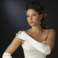 This Satin below ring finger glove is available in elbow, above elbow, or wrist length glove. This elegant bridal glove has an opening on the ring finger for exchanging wedding rings. The opening is decorated with a gathering of flowers.
