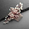 Rose Gold Freshwater Pearl Wedding Hair Comb with Crystal Leaves 4168HC-RG