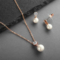 Rose Gold Pearl Drop Necklace Set with Round CZ 4581S-I-RG