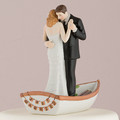 This Couple shares an intimate embrace before setting off in their petite row-boat made just for two. A sweet "Just Married" sign suspended on the back of their boat adds the perfect wedding touch. Whether outdoor enthusiasts or simple fans of true romance, here is a Cake Topper that will surely make you smile.