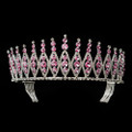 Silver Pink Rhinestone Pageant Tiara Headpiece 245