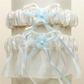 Sleek Satin and Organza 2 Pc. Bridal Garter Set - Ivory with Blue G016-BL-I