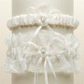 Vintage Wedding Garter Set with Floral Embroidered Tulle - Ivory G018-I-I