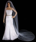 108 Inches - Couture Veil With Large Double Crystals, Rhinestone And Bugle Bead Patterns - Beads and Sequins