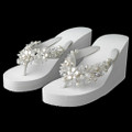 Charming Crystal Coin Pearl Accents High Wedge Flip Flops This dazzling and very popular Bridal Flip Flop is the perfect accent to anyone looking for a comfortable yet trendy alternative to wedding shoes. Whether worn to a destination wedding or an elegant event, you'll have happy feet!