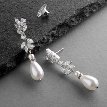 Cubic Zirconia and Teardrop Pearl Designer Bridal Earrings 4646E-I-S