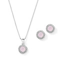 Cubic Zirconia Round Shape Halo Necklace and Stud Earrings Set - Pink Opal 4552S-PK