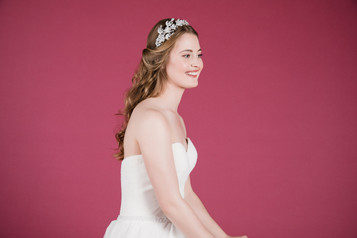 Description: Elena Designs E321 - Gold Crystal Flower Hair Clip - Jeweled Hair Accessory. Float down the aisle with cloud nine bliss. Shimmering and lustrous complete this heart-fluttering accessory.