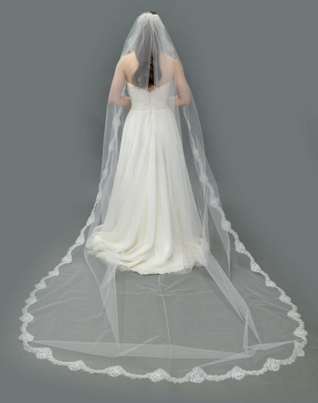 Description: Discover the timeless beauty of the Elena Designs Flower Lace E1479L Veil - 120L. Handcrafted with delicate lace , this elegant bridal veil adds a touch of romance to your wedding look. Shop now! 120 Inch Long Wedding Veil!