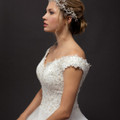 Description: Elena designs headpiece style E949. This makes a beautiful bridal statement for your silhouette.