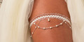 Description: Stretch lace garter with cultured and pearl bead and chain design