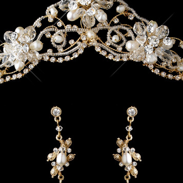 Choose Options Quick view EBC Gold Freshwater Pearl, Swarovski Crystal Bead and Rhinestone Tiara Headpiece 2596 & Jewelry Set 7825 Gold Freshwater Pearl, Swarovski Crystal Bead and Rhinestone Tiara Headpiece 2596 & Jewelry Set 7825 Item Style Number: HP-2596-NE-7825-G-FW Description: Add a nice touch of elegance to your wedding day ensemble with this Headpiece and Jewelry... MSRP: $240.00 Choose Options Add to Wish List Compare