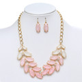 Description: Pump up your style with our gorgeous statement necklace and earrings set for prom, homecoming and bridemaids in graduating shades of Pink. The necklace is 1 1/4" w at the center and is adjustable from 16" - 20". The french wire drop earrings are 1 1/4" h.